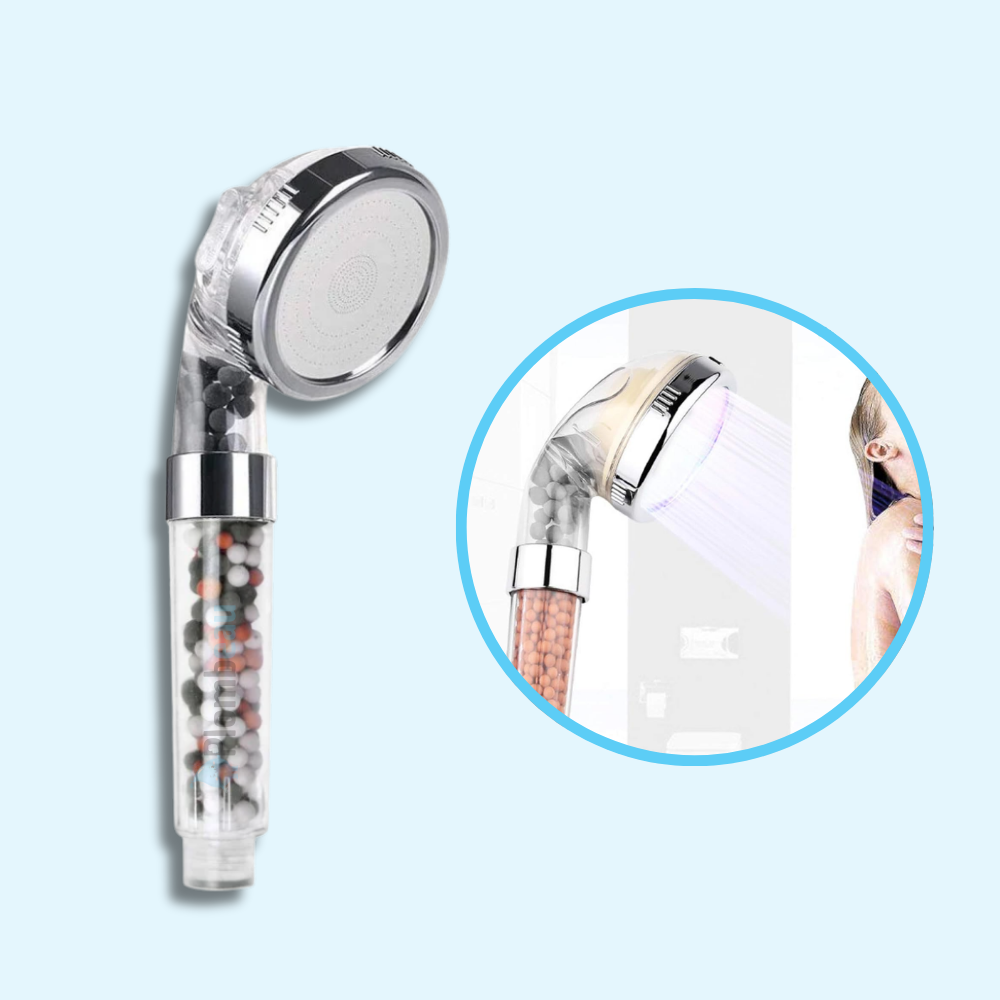 Un système de filtration ionique puissant élimine jusqu’à 99 % du chlore, des impuretés, des bactéries et des métaux lourds, pour une eau douce, respectueuse de votre peau et de vos cheveux.